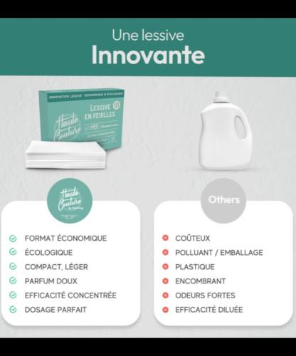 Découvrez une nouvelle génération de lessive à la fois économique, écologique et ultra-performante. La lessive en feuilles Haute Couture révolutionne votre routine de lavage avec une formule innovante, sans plastique et respectueuse de l'environnement.